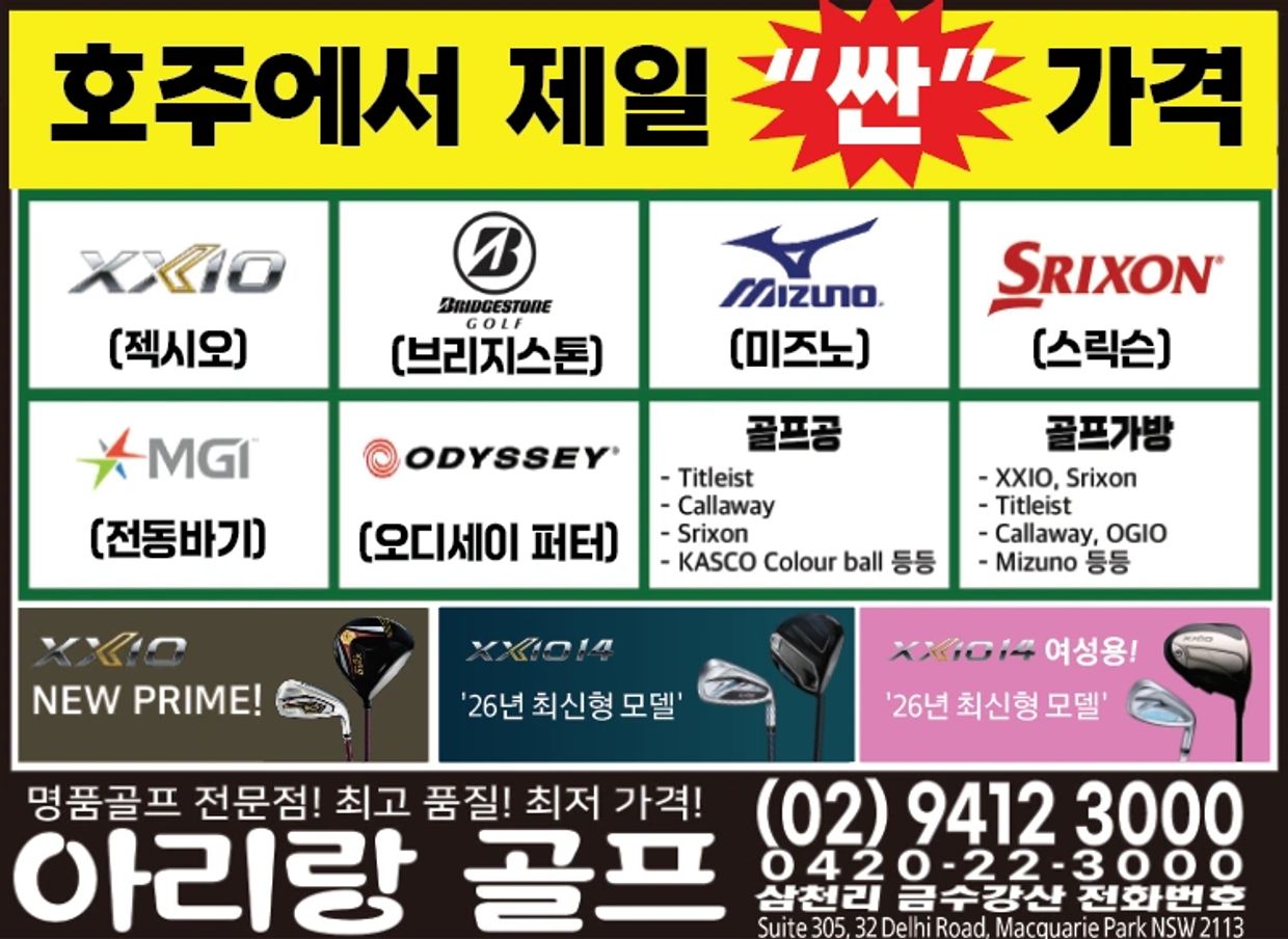 저희 골프샵은 젝시오, 브리지스톤, 스릭슨, 클리브랜드, 미즈노, OGIO, ODYSSEY, MGI, 타이틀 리스트 호주 공식 딜러 입니다.
